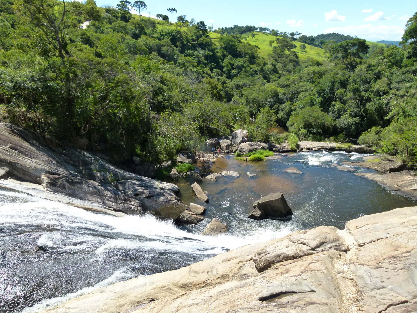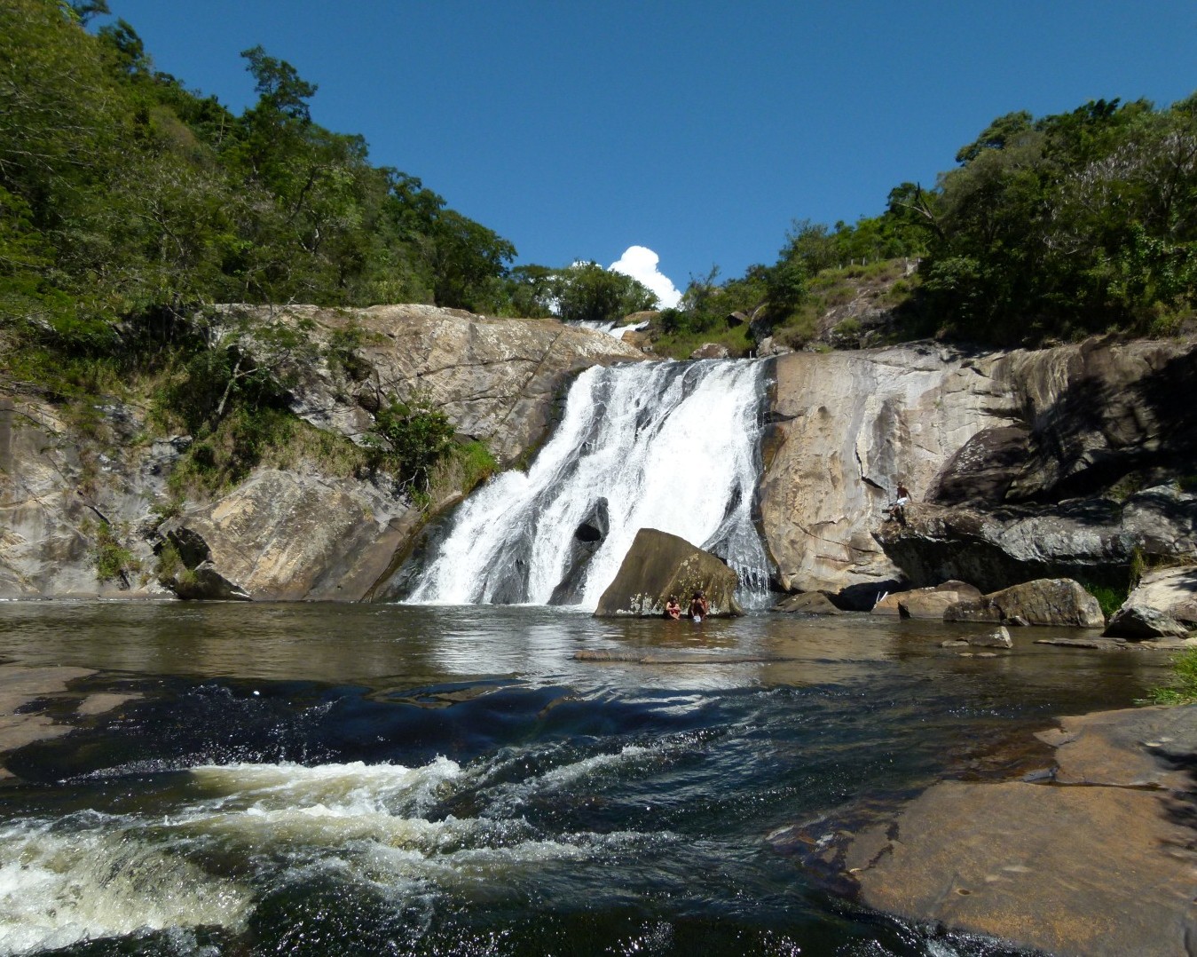 Na cachoeira do Salto Grande é possível observar bem de perto as Pirapitingas, uma espécie endêmica de peixe, e nos dias quentes se refrescar com um banho nas águas geladas do rio Paraibuna.