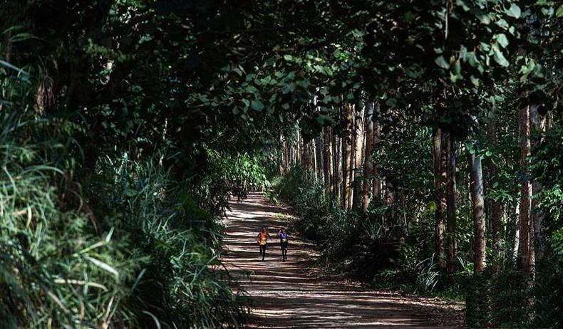 Em ambas as provas o percurso estava bem sinalizado. Quanto ao terreno, apesar de não ter trilhas, nas estradinhas encontramos pedras, buracos, areia, galhos de árvores, terra fofa, curvas, aclives e declives. Então toda atenção, do início ao fim, foi essencial para evitar quedas.