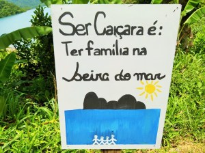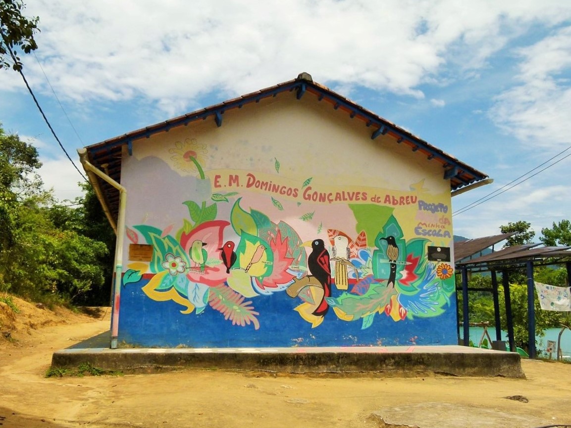 Além da beleza singular da praia da Curupira, nos chamou atenção a escolinha, com belas pinturas nas paredes e no chão, de animais e pássaros da mata, colocando o aprendizado no visual do dia a dia das crianças. Havia também placas com frases valorizando a natureza, a família e o caiçara; E suas coisas como a “canoa caiçara”.