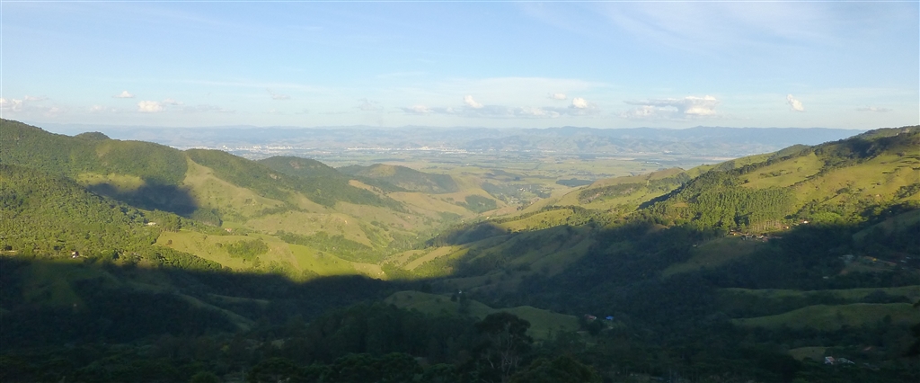 Começa com a visão dos vales profundos que escondem densas florestas, em área de proteção ambiental de mata atlântica com inúmeros cursos d’água, piscinas naturais e cachoeiras. Do alto, as montanhas escarpadas se projetam. Na linha do horizonte, o rio Paraíba do Sul está escondido, enquanto que Guaratinguetá e Aparecida conseguimos avistar. E mais ao fundo, a Serra do Mar.