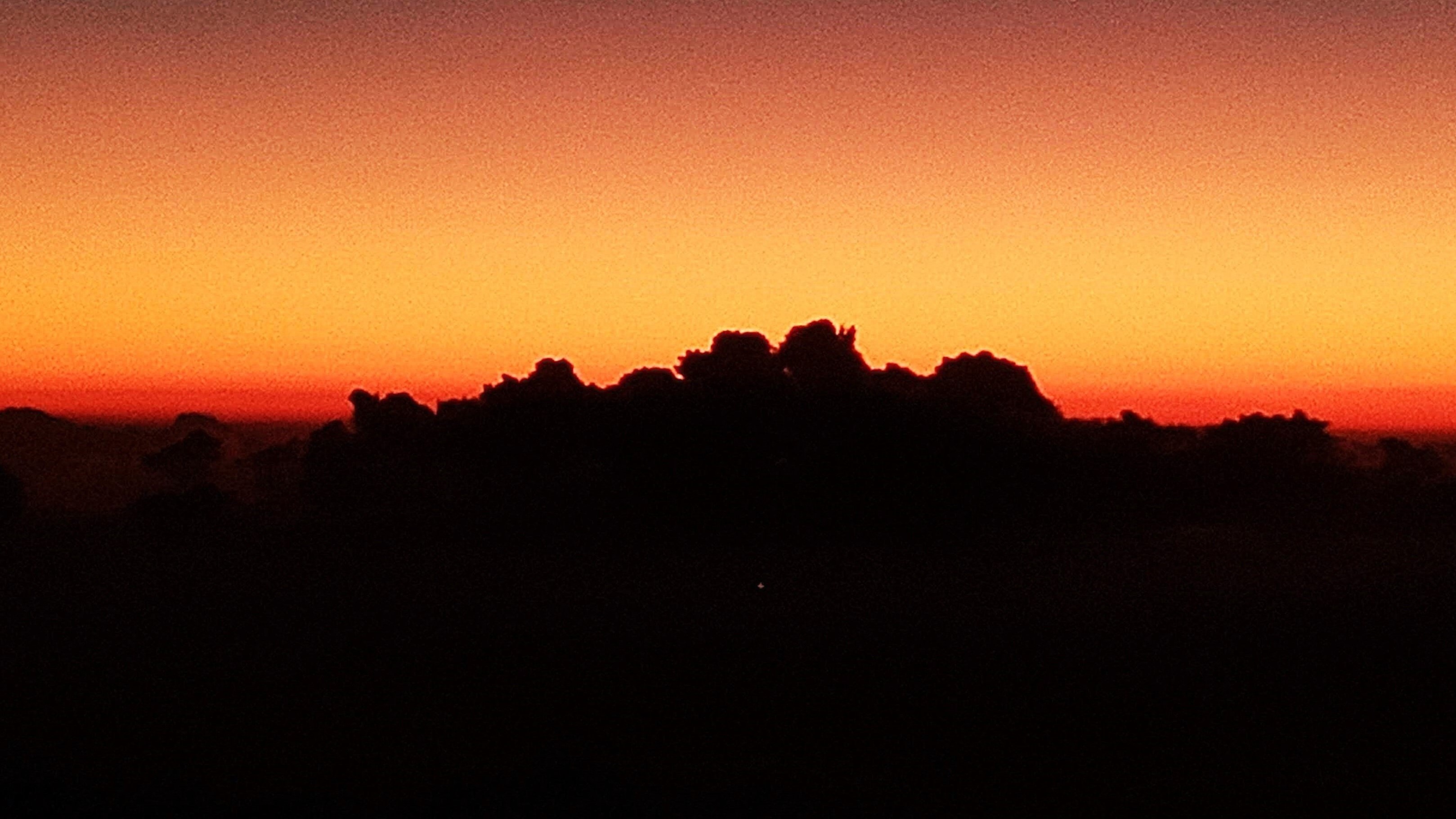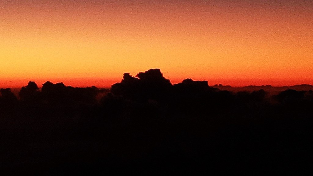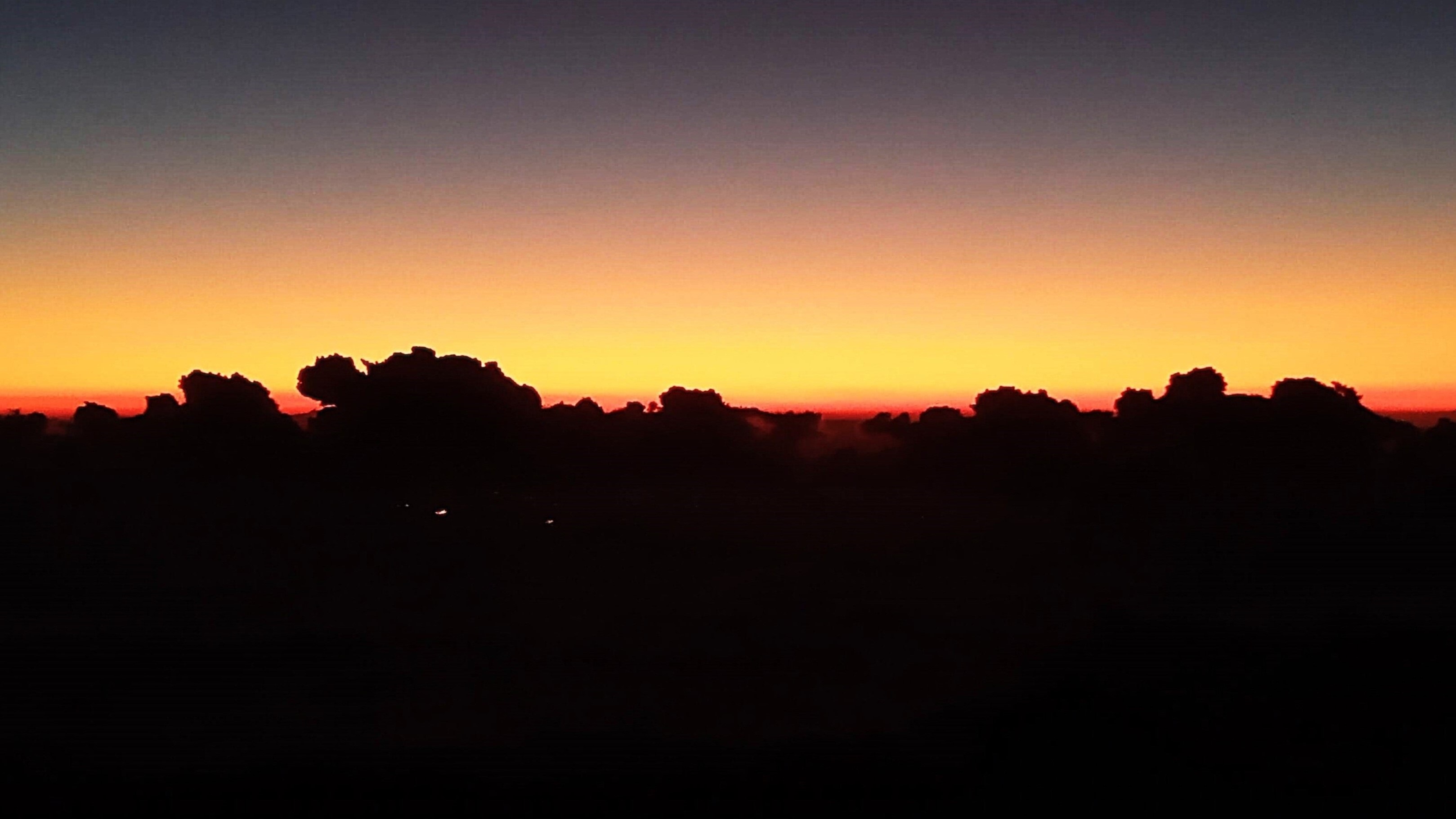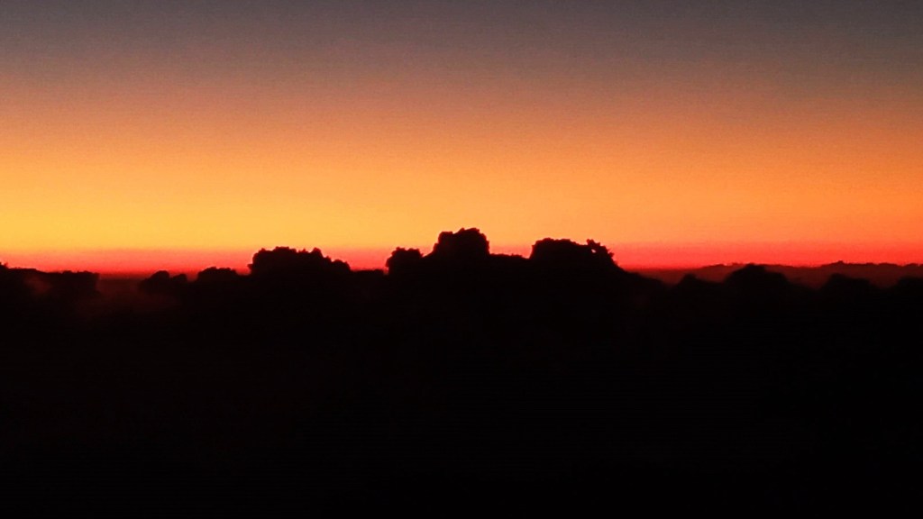 No alto da serra, o mundo parece suspenso entre a noite e o despertar. A luz ainda não chegou por completo — apenas um sutil degradê rompe a escuridão, tingindo o céu com tons profundos que transitam do azul escuro ao alaranjado gritante, como uma promessa silenciosa do amanhecer.