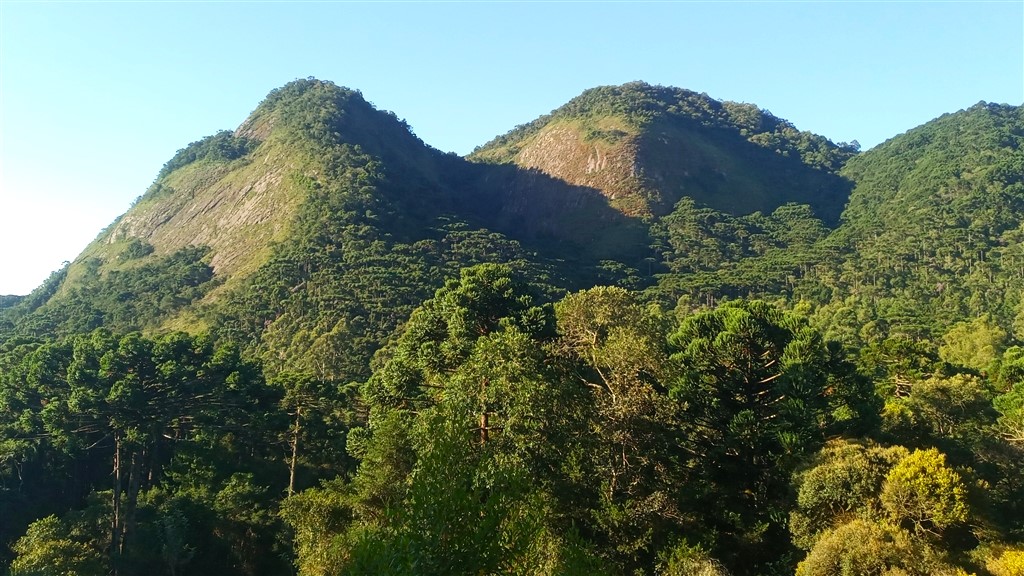Iniciamos a trilha em mata de Araucária, ao som de um riacho distante e o cantarolar dos pássaros. De início já percebemos uma biodiversidade preservada.